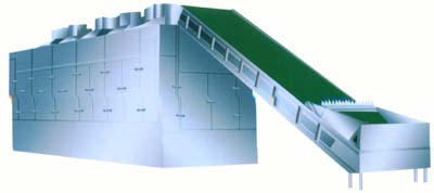 该系列干燥机摊放被加工物料采用多层移动式不锈钢网带或振动板,热气流自下而上穿过网带及其上的物料层,热交换均匀、充分、生产效率高,产品质量好,高有冷却层和旋转输料装置,出料温度低,利于及时包装。