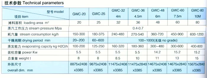 摊料面积由25㎡~80㎡,七种大小等的机型,可满足多种物料和不同生产规模的需要