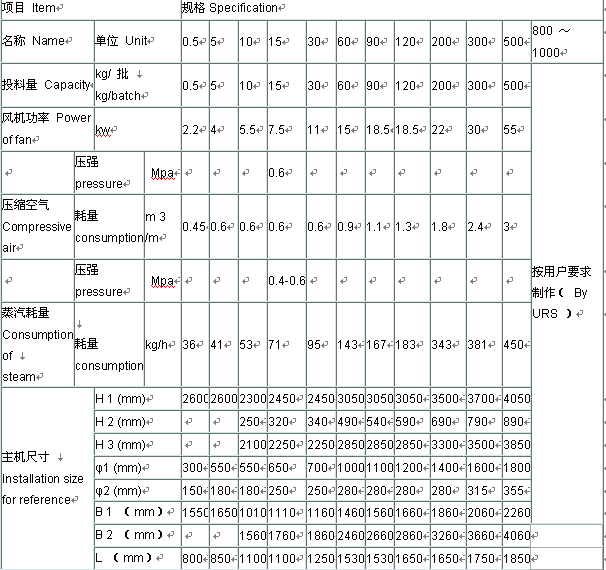 ※ 吸潮性和流动性差的物料也能制成合格的颗粒
