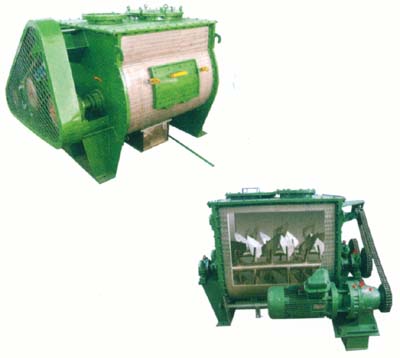 本系列混合机以强烈、高效混合为特点、卧式筒体内两根搅拌等速反向旋转,上特殊布置的桨叶确保物料径向、环向、轴向三向运动,形成复合循环,在极短的时间内达到均匀混合