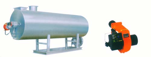 燃料通过燃烧器燃烧.产生高温烟气。并借助具有强化换热措施的热风炉将高温烟气的热量传导给被加热的空气.高温燃气经热量散发后温度降低至250‘C以下由引风机排放大气。需加热的空气通过选配的鼓风机强送入热风炉、吸热后温度升至额定值从热风出口送出、当热风温度达到额定的上限温度时。燃烧器会自动停止燃烧或自动转为小火焰燃烧,当热风温度降低到额定的下限温度时,燃烧器又会重新点燃运行或转为大火燃烧,升温的速度可调进风阀来实现。